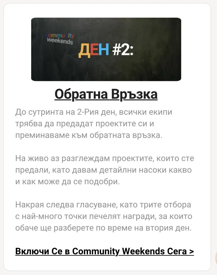 Ако не си не си на 100% убеден, че това е било най-стойностното двудневно онлайн обучение за общности…